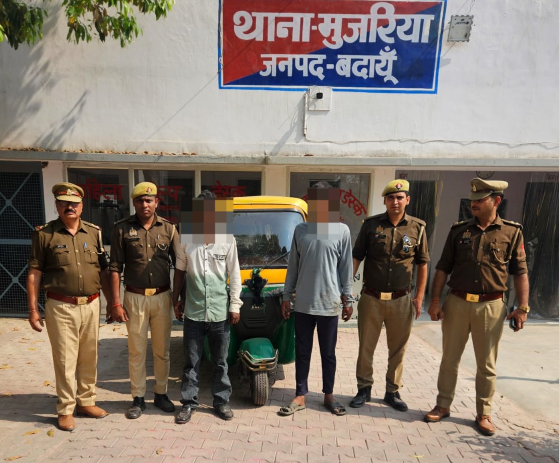 वरिष्ठ पुलिस अधीक्षक जनपद बदायूं डॉ0 बृजेश कुमार सिंह के कुशल निर्देशन एवं अपर पुलिस अधीक्षक ग्रामीण बदायूं के पर्यवेक्षण एवं क्षेत्राधिकारी सहसवान व प्रभारी निरीक्षक थाना मुजरिया के नेतृत्व में अपराध की रोकथाम व अपराधियों की गिरफ्तारी हेतु चलाए जा रहे अभियान के अन्तर्गत थाना मुजरिया पुलिस टीम द्वारा, थाना मुजरिया क्षेत्रान्तर्गत ग्राम कोल्हाई में दिनाँक 02.03.2026 को एक टैम्पो रजिस्ट्रेशन नं0 यूपी 24 ए टी 6711 के चोरी हो जाने के सम्बन्ध में पंजीकृत अभियोग की विवेचना के दौरान प्रकाश में आये 02 नफर अभियुक्तगण 1. रवि लोधी पुत्र चन्द्रपाल निवासी ग्राम हरदुआगंज थाना हरदुआगंज जनपद अलीगढ उम्र करीब 20 वर्ष 2. शिवम शर्मा पुत्र रविन्द्र शर्मा निवासी लेखऱाज नगर कुलदीप विहार थाना महुआ खेडा जनपद अलीगढ उम्र करीब 20 वर्ष को गिरफ्तार कर माननीय न्यायायाल के समक्ष पेश किया गया ।