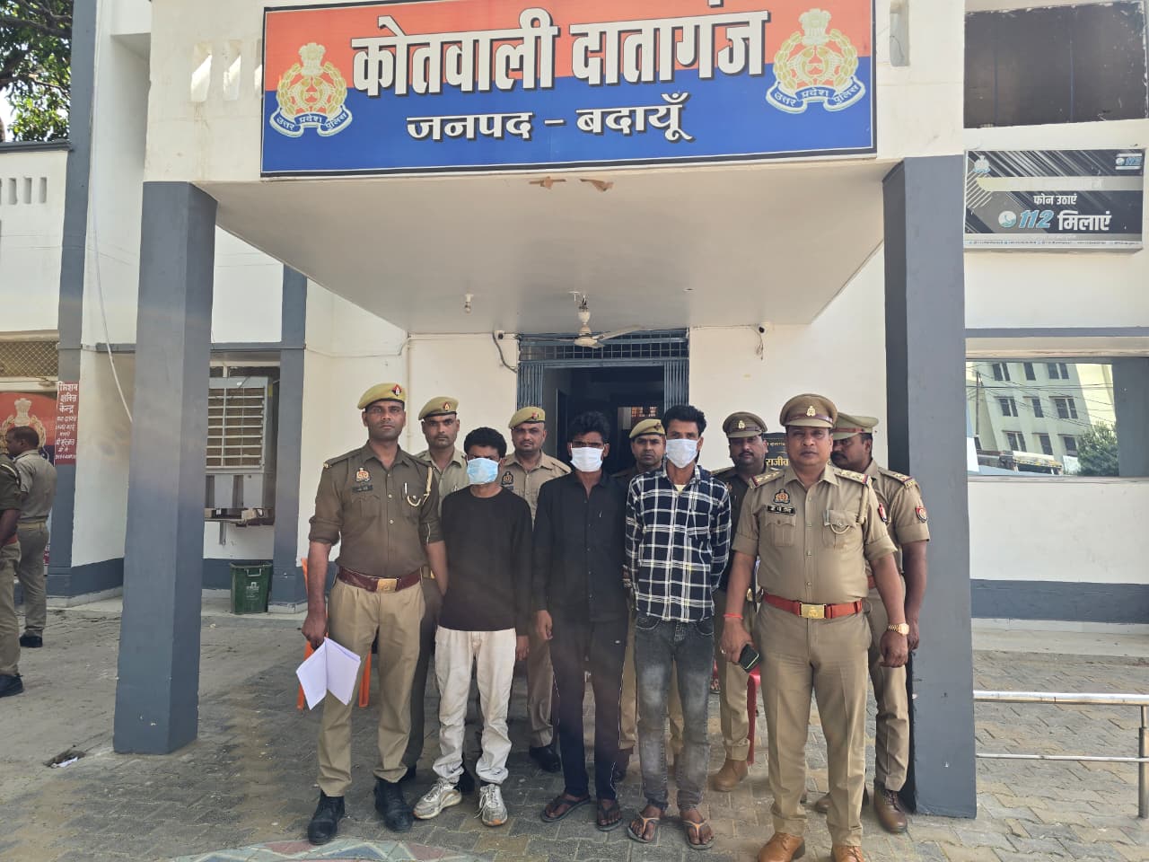 वरिष्ठ पुलिस अधीक्षक बदायूँ डॉ0 बृजेश कुमार सिंह के आदेशानुसार,अपर पुलिस अधीक्षक नगर श्री विजयेन्द्र द्विवेदी के निर्देशानुसार व क्षेत्राधिकारी दातागंज श्री के0 के0 तिवारी के पर्यवेक्षण में अपराध एवं अपराधियों के विरुद्ध चलाये जा रहे गिरफ्तारी अभियान के अन्तर्गत थाना दातागंज पुलिस द्वारा दिनाँक 09.03.2026 को थाना स्थानीय पर पंजीकृत मु0अ0सं0 067/2026 धारा 103(1), 61(2), 352, 351(3) BNS के वांछित 03 अभियुक्तगण 1. मोनू पुत्र ओमपाल सिंह 2. शादाब पुत्र शौकत अली 3. गोविन्द सिंह पुत्र सुरेन्द्र सिंह समस्त निवासीगण ग्राम छछऊ थाना दातागंज जनपद बदायूँ को मय टैक्टर स्वराज 735 FE सहित गिरफ्तार कर मा0 न्यायालय के समक्ष पेश किया गया ।