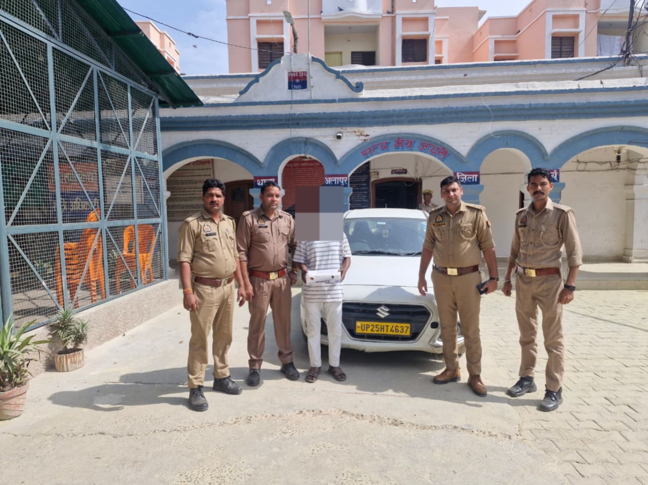 वरिष्ठ पुलिस अधीक्षक बदायूँ सुश्री अंकिता शर्मा के निर्देशन में चलाए जा रहे अपराध एवं अपराधियों के विरुद्ध गिरफ्तारी अभियान के अन्तर्गत आज दिनाँक 14.03.2026 को थाना अलापुर पुलिस द्वारा संदिग्ध व्यक्ति/वाहन चैकिंग के दौरान 01 अभियुक्त राजीव शर्मा पुत्र प्रेमपाल शर्मा नि0 सिपईया गौटिया थाना फरीदपुर जनपद बरेली को मय एक अदद तमंचा 315 बोर मय 01 जिन्दा कारतूस 315 बोर तथा चोरी की एक सफेद रंग की स्विफ्ट डिजायर कार UP25HT4637 सहित गिरफ्तार किया गया । चोरी की कार से संबंधित थाना सिरौली जनपद बरेली पर मु0अ0सं0 318(2) बीएनएस पंजीकृत है । थाना अलापुर पर मु0अ0सं0 44/2026 धारा 3/25 आर्म्स एक्ट व 317(2) बीएनएस पंजीकृत कर अभियुक्त राजीव शर्मा उपरोक्त को माननीय न्यायालय के समक्ष पेश किया गया ।