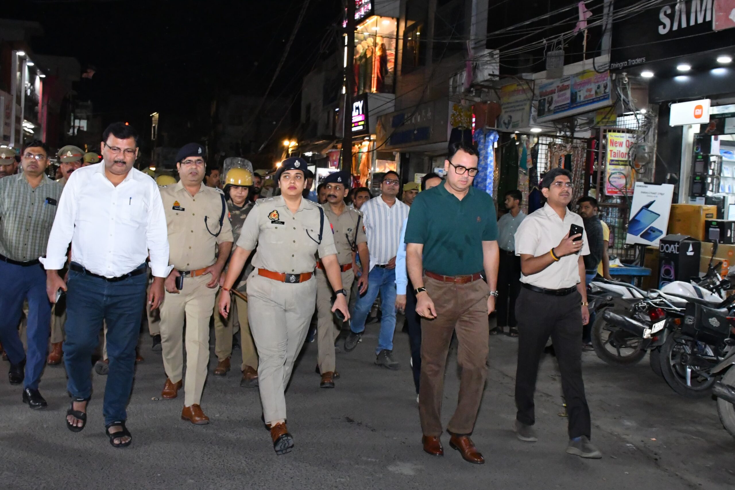 जिलाधिकारी अवनीश राय ने वरिष्ठ पुलिस अधीक्षक अंकिता शर्मा अन्य पुलिस व प्रशासनिक अधिकारियों के साथ गुरुवार की सायं छः सड़का से घंटाघर से सोथा मोहल्ला जामा मस्जिद से मंडई चौक से कोतवाली,
