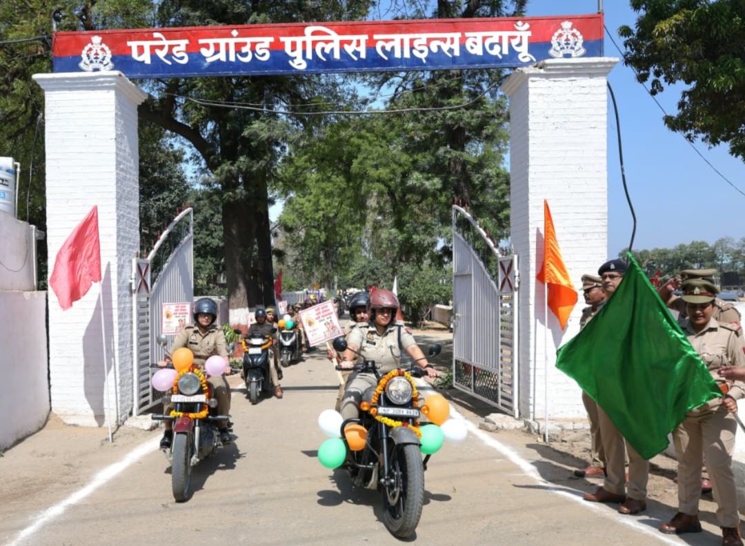 इसी क्रम में आज दिनांक 22.03.2026 को वरिष्ठ पुलिस अधीक्षक बदायूँ, सुश्री अंकिता शर्मा के निर्देशन व नेतृत्व में जनपद बदायूँ के समस्त थानों पर गठित मिशन शक्ति टीम एवं एण्टी रोमियो टीम द्वारा महिला सुरक्षा एवं सशक्तिकरण के प्रति जागरूकता फैलाने हेतु रिजर्व पुलिस लाइन, बदायूँ से भव्य बाइक रैली का आयोजन किया गया। रैली का उद्देश्य समाज के प्रत्येक वर्ग तक यह संदेश पहुंचाना था कि महिलाओं की सुरक्षा एवं सम्मान सर्वोच्च प्राथमिकता है तथा इसके लिए पुलिस एवं प्रशासन पूर्ण रूप से प्रतिबद्ध है।