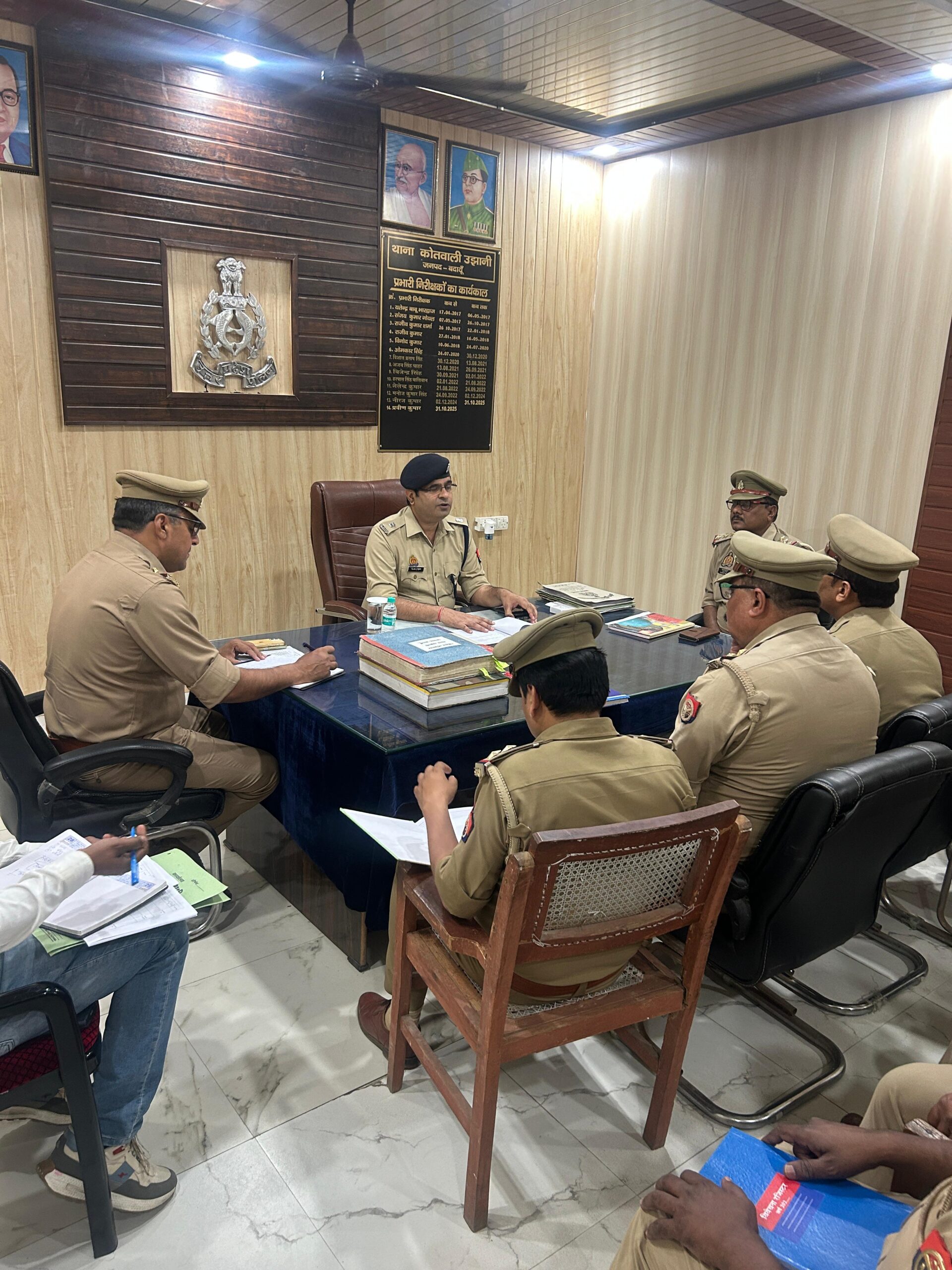 अपर पुलिस अधीक्षक नगर,बदायूँ श्री विजयेन्द्र द्विवेदी द्वारा थाना उझानी कार्यालय में सभी विवेचको के साथ मीटिंग कर लंबित विवेचनाओं की समीक्षा करते हुये विवेचनाओं के समयबद्ध और गुणवत्तापूर्वक निस्तारण एवं वांछित अपराधियों की शीघ्र गिरफ्तारी हेतु निर्दशित किया गया। ऑपरेशन कन्विक्शन ,साइबर सेल ,साइबर सुरक्षा जागरुकता ,IGRS व अपराध नियंत्रण एवं मिशन शक्ति केन्द्र के कार्यों के सम्बन्ध में समीक्षा कर सम्बन्धित को आवश्यक दिशा निर्देश दिये गये।